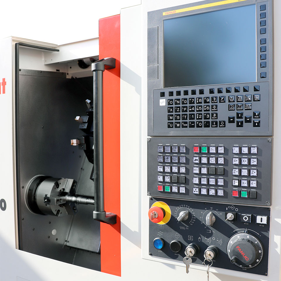 Die Universal CNC-Drehmaschine TND 140 zeichnet sich durch ein kompaktes konstruktives Konzept aus, das auf Steifigkeit, hohe Leistung und Bedienfreundlichkeit ausgerichtet ist. Mit einem zum optimalen Spänefall um 60º geneigten Schrägbett ist sie mit einem schnell schaltenden servobetätigten Revolver mit 12 Positionen für feststehende oder angetriebene Werkzeuge und robust gelagertem Reitstock ausgestattet.