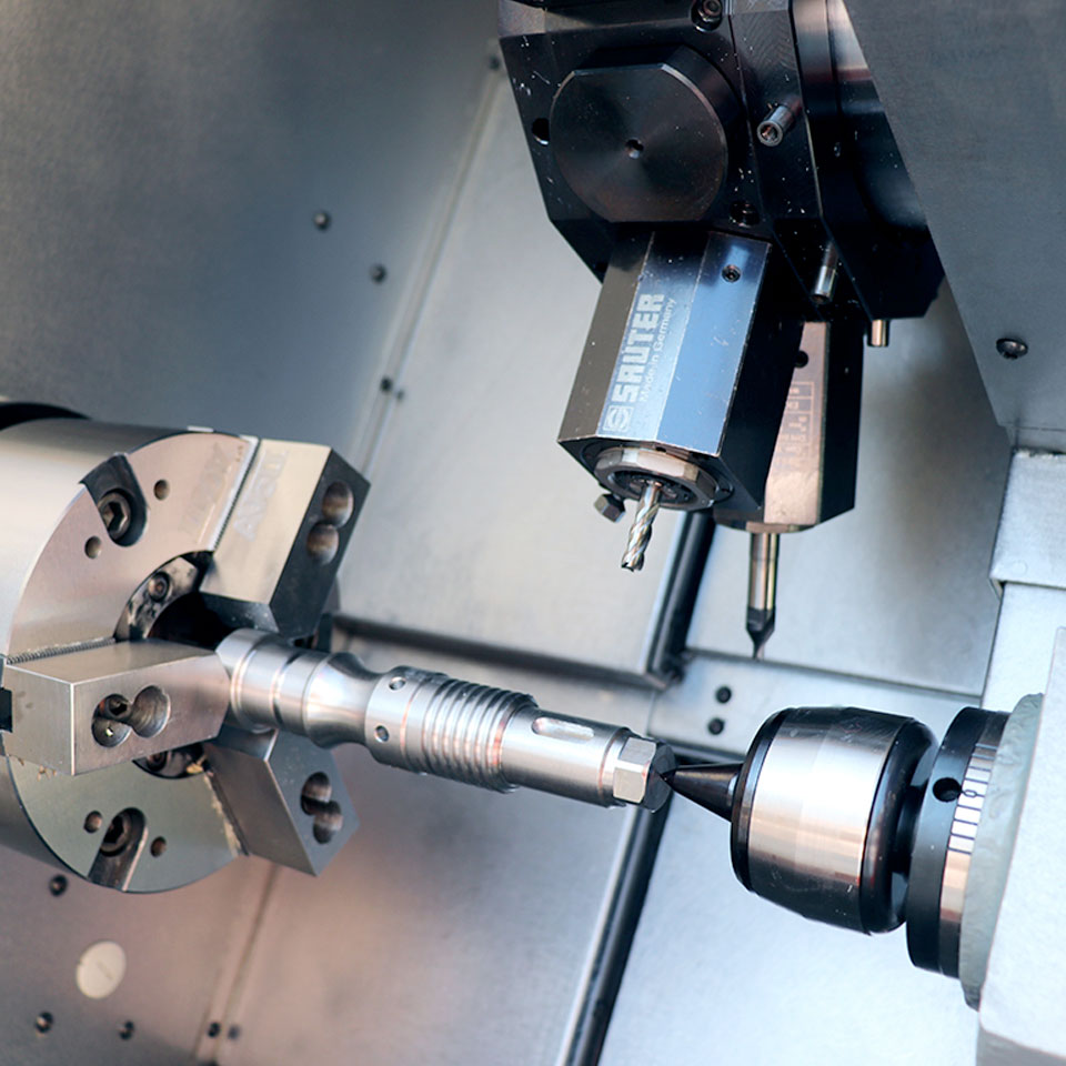 • Kreuzschlitten und Reitstock verfahren auf hochpräzisen Linearführungen