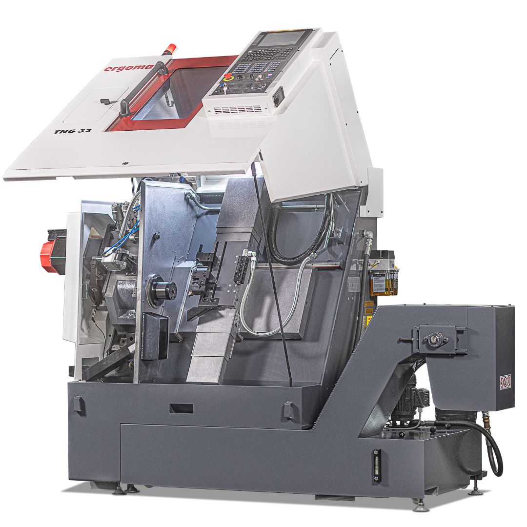 O torno deslizante linear CNC da série TNG 32 é feito sob medida para o segmento de peças torneadas menos complexas, que ainda são fabricadas principalmente em tornos automáticos controlados por came.