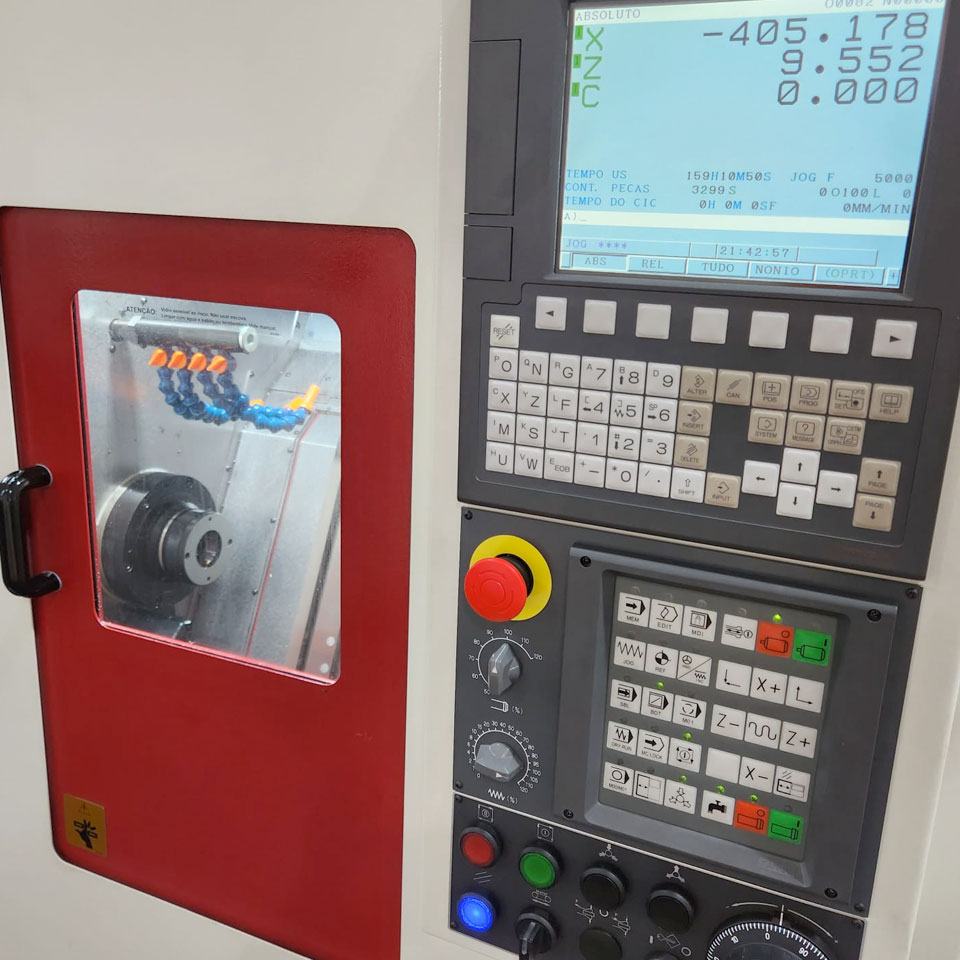 O design robusto e extremamente compacto da máquina, com uma base inclinada de 60º para queda ideal de cavacos, oferece ao operador um local de trabalho claro e confortável, projetado de acordo com princípios ergonômicos.