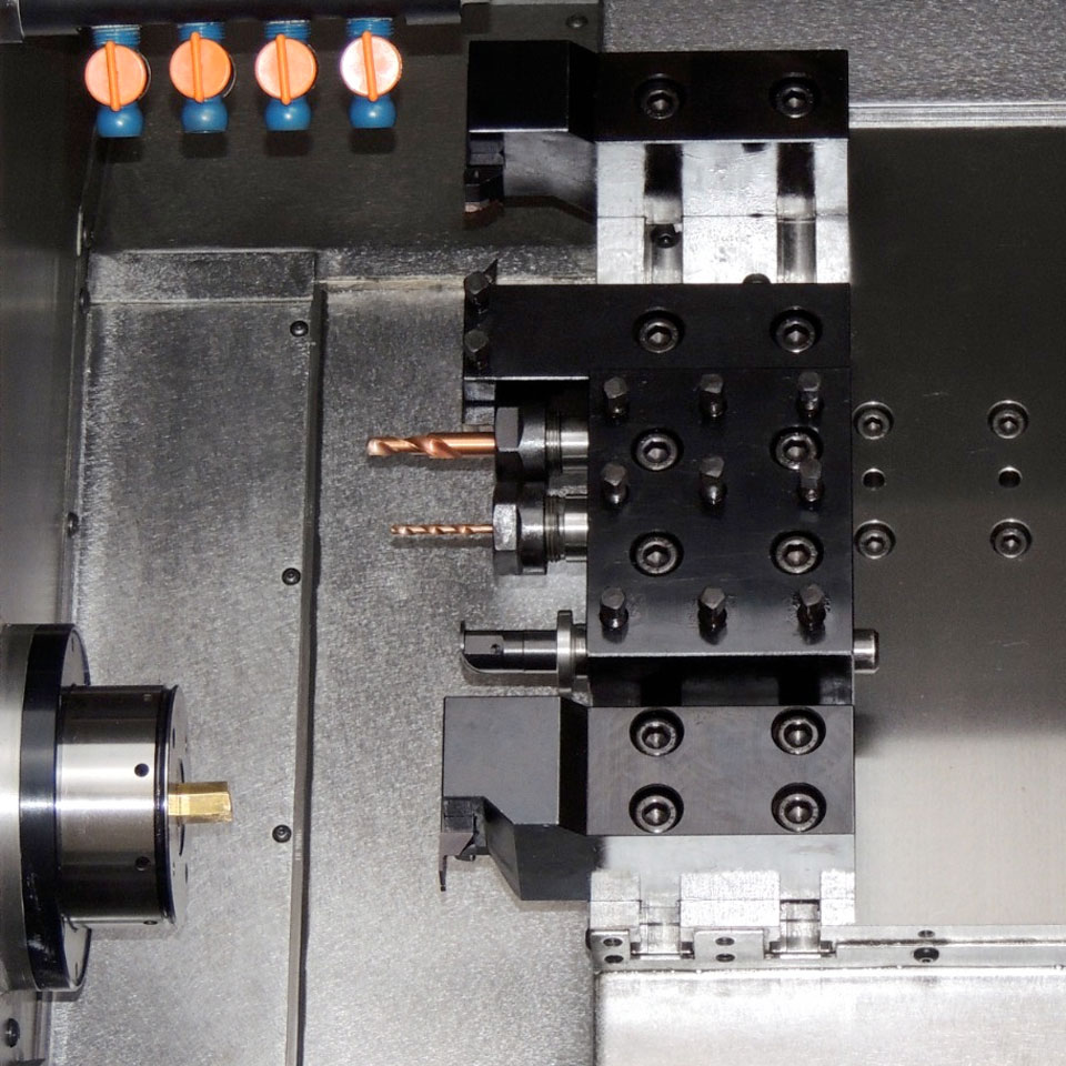 Em contraste com estes, o novo TNG 32 permite tempos de preparação incrivelmente curtos, graças, em parte, ao moderno e fácil de usar controle CNC e, em parte, ao bloco porta-ferramentas pré-ajustável, que permite a troca completa de um conjunto de ferramentas em segundos. O curto curso do carro transversal minimiza os tempos de corte entre cavacos – um pré-requisito para uma produção extremamente econômica.